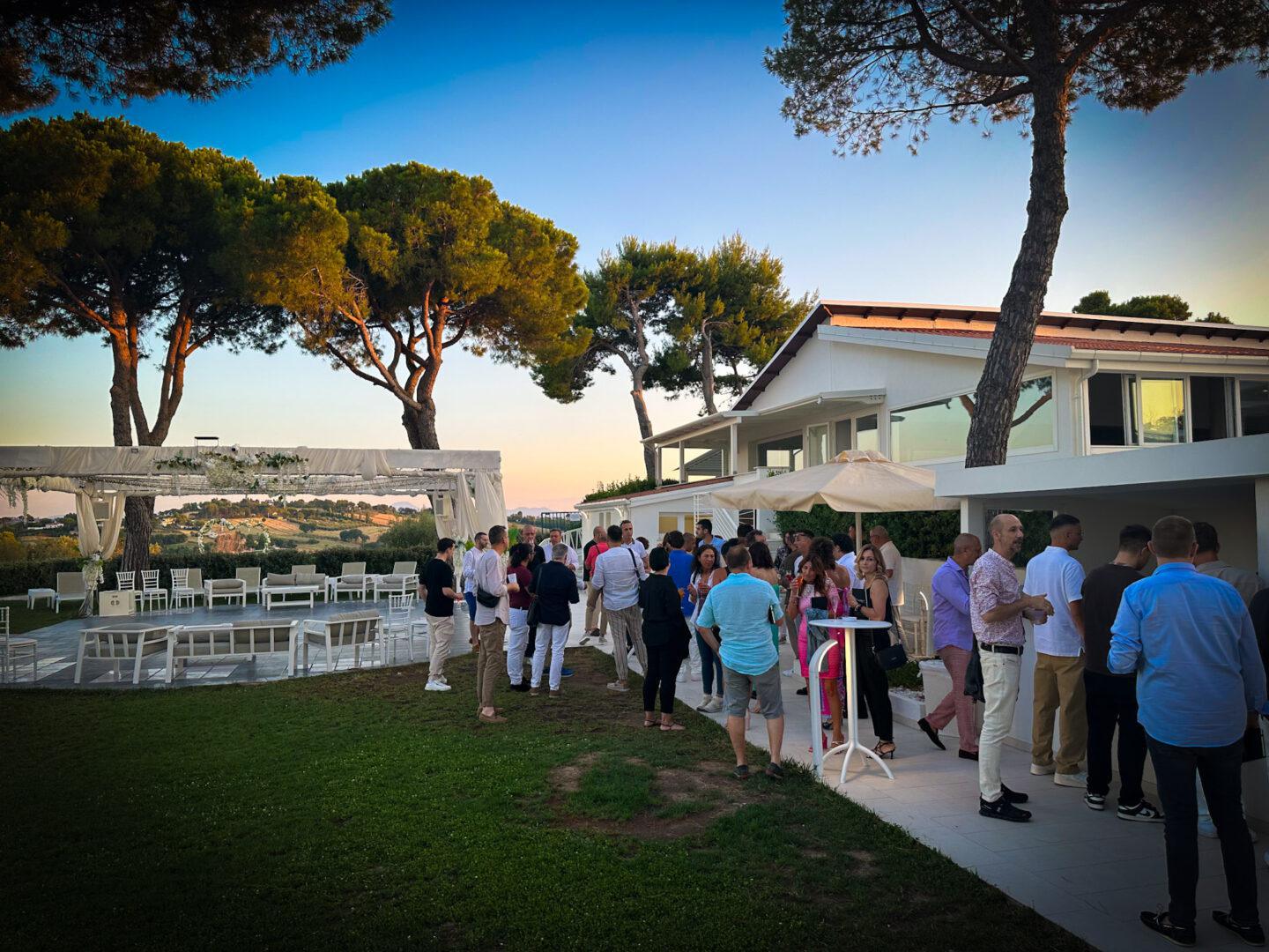 Accoglienza ospiti in giardino con aperitivi vari come sopritz, americano, prosecco accompagnati da  chips, rustici e spiedini di caprese