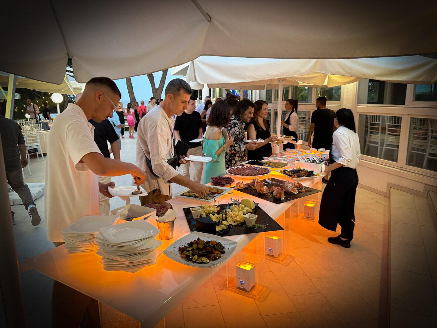 1. Antipasto a buffet: misto pesce e carne con finger food, sushi di carne e di pesce con un vasto assortimento di altre pietanze.