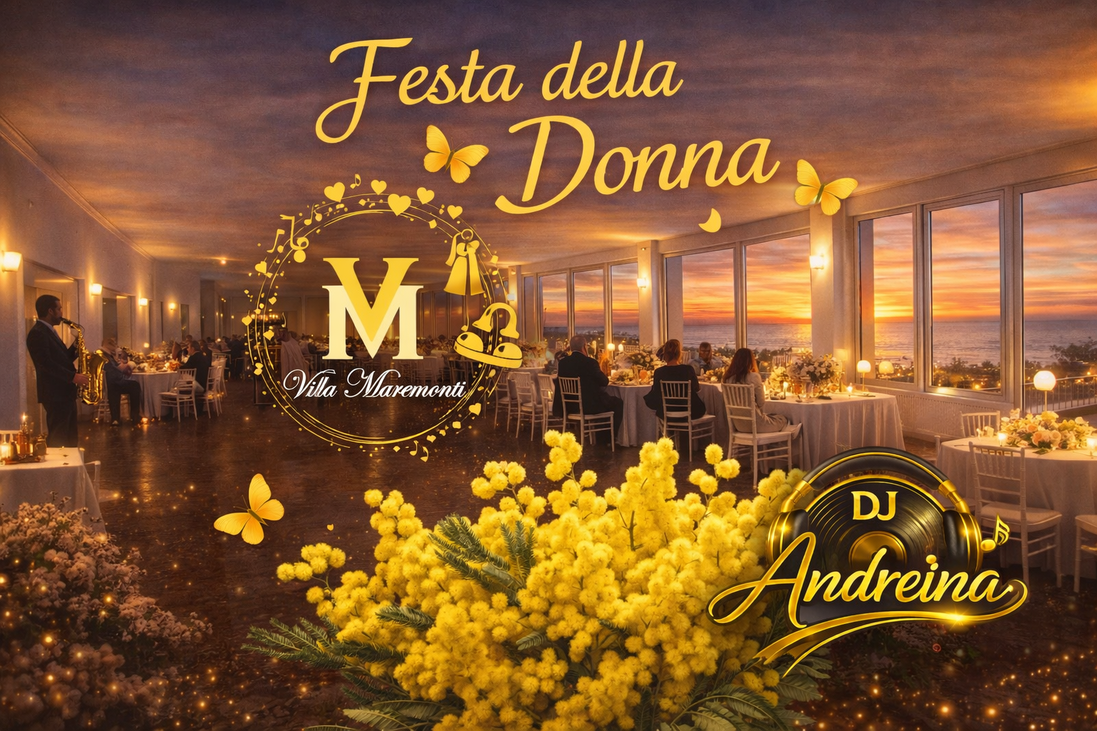 La giornata inizierà con un pranzo dedicato, immerso nella calda e raffinata cornice della villa, tra luce naturale, panorama sul mare e cura dei dettagli. A seguire, il pomeriggio sarà accompagnato da musica e intrattenimento continuo con il DJ set di Andreina, che animerà l’evento fino alle ore 20:00, trasformando il pranzo in una vera esperienza di festa.