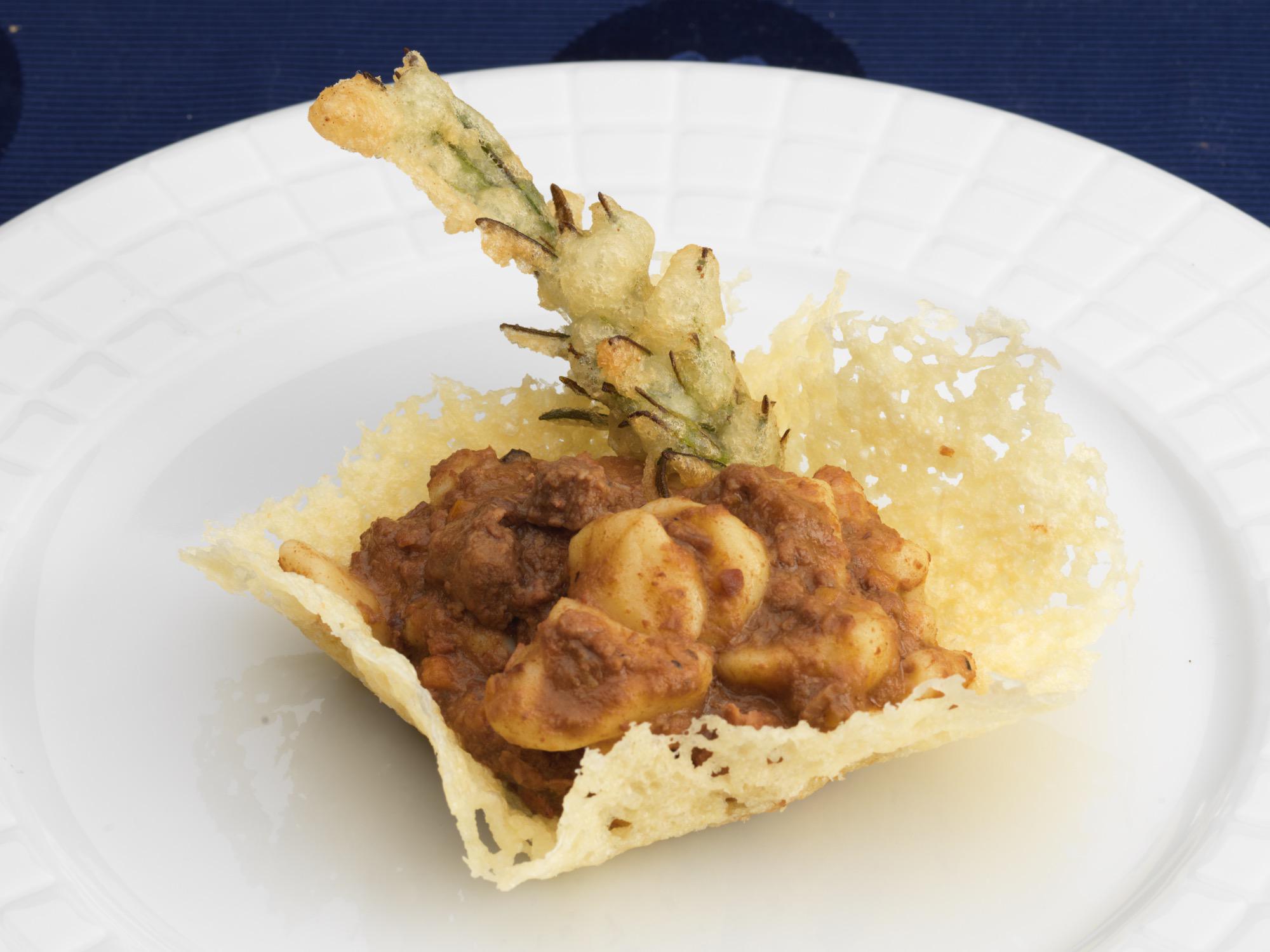 flan di zucca con crema al pecorino e guanciale croccante
